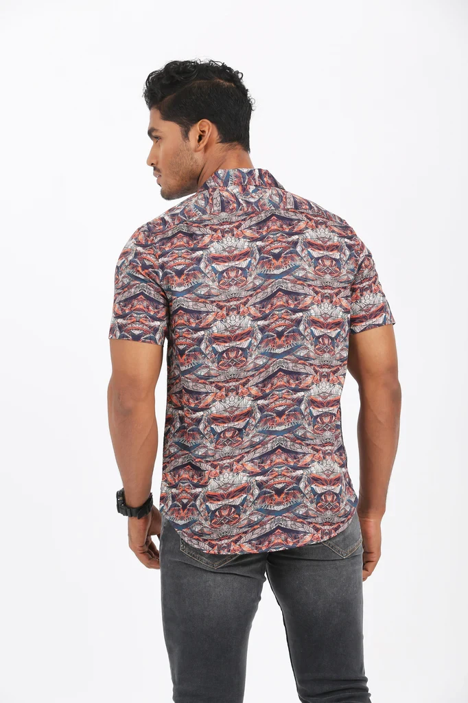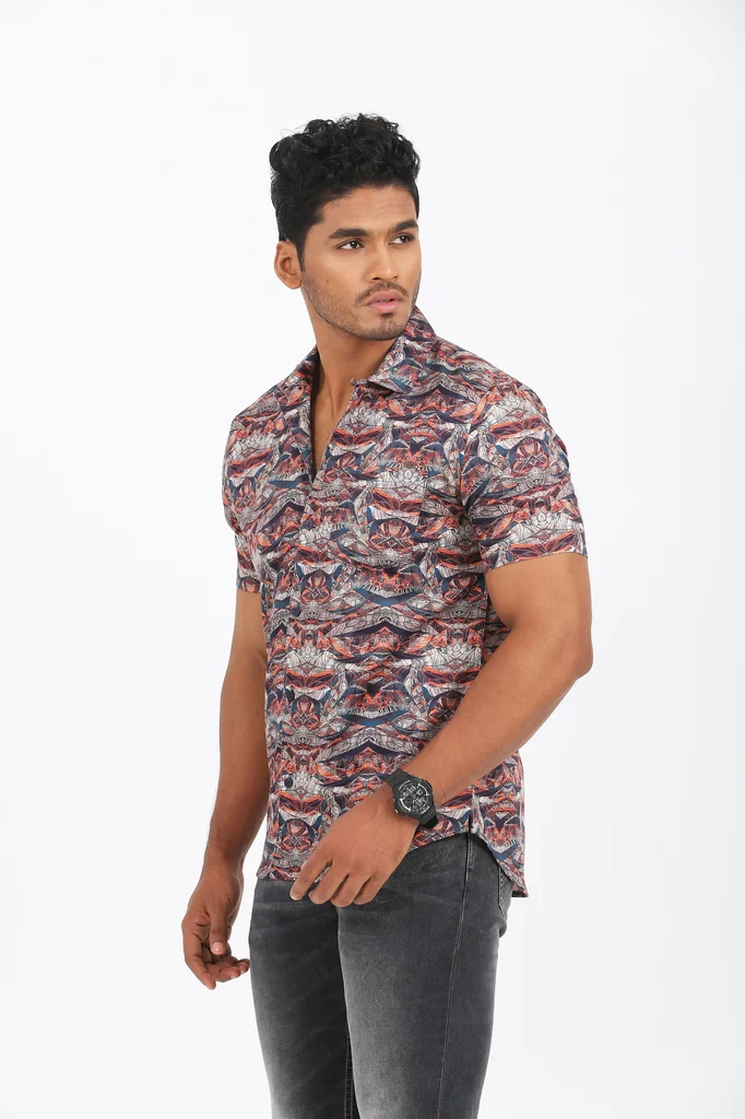 Classical Allover Print for an Elegant Casual Outfit. Excellent Lapel Collar Detail Shirt. Digital Printed, Regular- Fit Men’s Casual Shirt