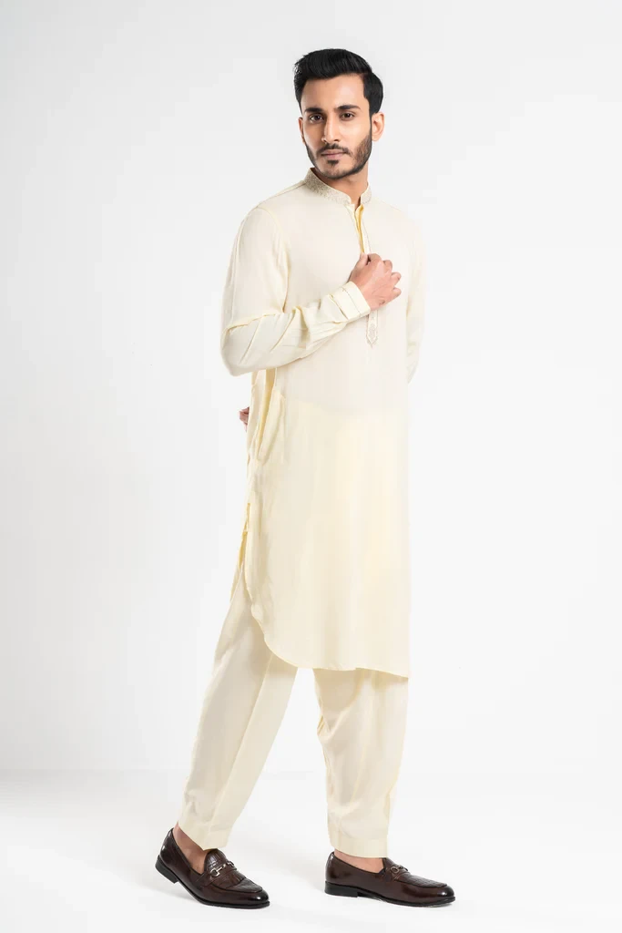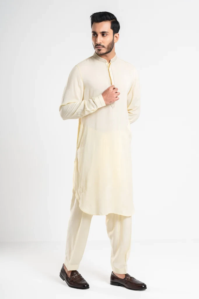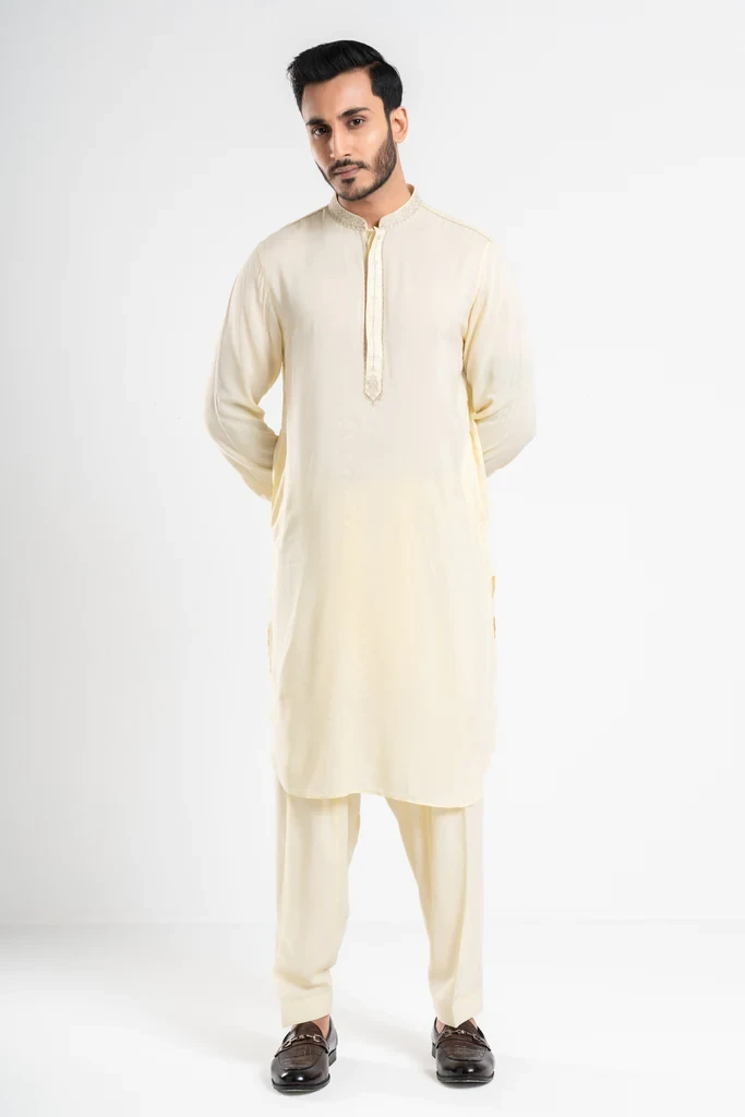 The Kabli set is a stylish option for various occasions. The Mandarin band, around placket and cuff embroidery details, adds a touch of elegance to the outfit, while the comfortable and sleek design ensures that you'll feel good wearing it. It's always important to choose clothing that makes you feel confident and comfortable, and if the Kabli set fits that criterion for you, then it may be a great choice.