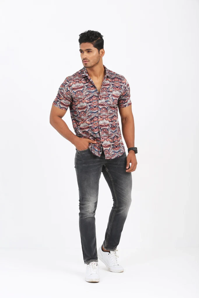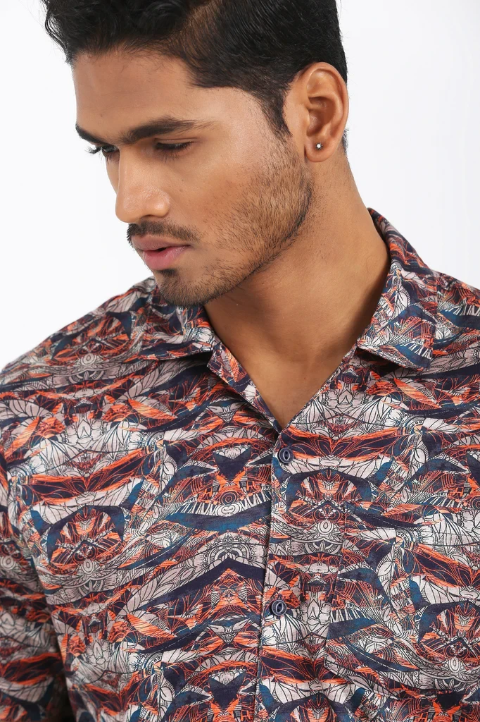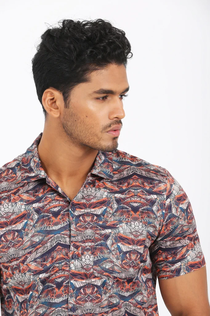 Classical Allover Print for an Elegant Casual Outfit. Excellent Lapel Collar Detail Shirt. Digital Printed, Regular- Fit Men’s Casual Shirt