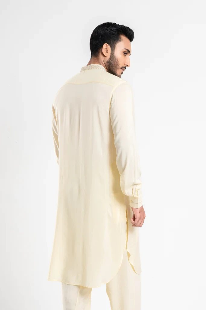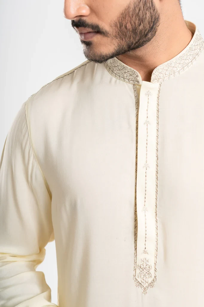 The Kabli set is a stylish option for various occasions. The Mandarin band, around placket and cuff embroidery details, adds a touch of elegance to the outfit, while the comfortable and sleek design ensures that you'll feel good wearing it. It's always important to choose clothing that makes you feel confident and comfortable, and if the Kabli set fits that criterion for you, then it may be a great choice.